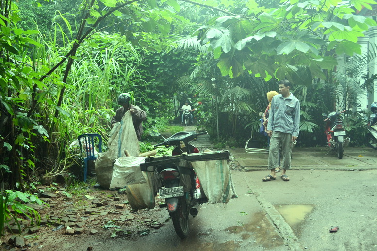 | Harga Sampah. Tampak Syarifuddin menyatukan sampah ber- bahan plastik dan besi ke karung besar di RHD (7/1/13).Foto: Rijal |
