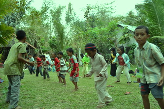 Hebatnya tari ini diajarkan oleh peserta kelas komunitas yang telah mahir menarikannya dan beberapa pendamping ikut belajar menari berbaur dengan peserta. Demikian pula musik pengiring (gendang) yang juga dibawakan oleh anak-anak kelas komunitas. Saling berbagi ilmu merupakan bagian dari proses belajar di Kelas Komunitas RHD.